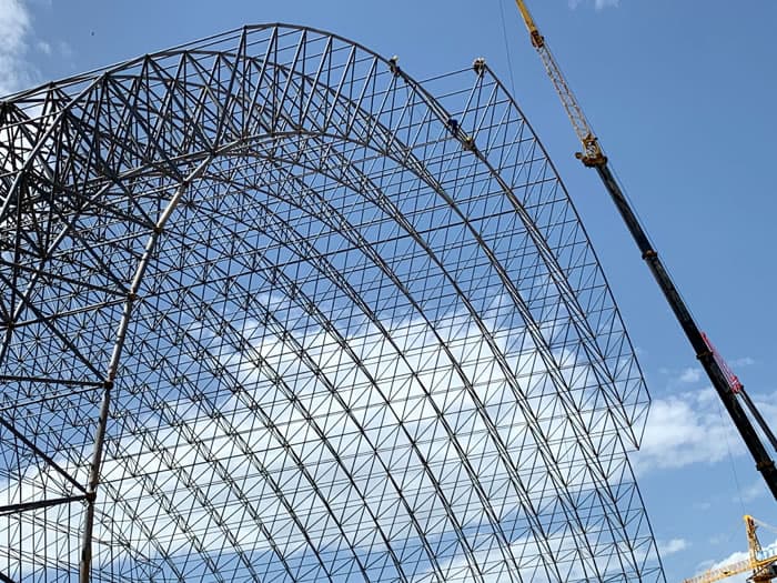 (2)沈阳网架加工前应对现场尺寸进行复测,确认无误后方可进行加工、安装;网架制作、运输、安装应遵守《空间网格结构技术规程》JGJ7-2010、《钢网架螺栓球节点》JG/T 10-2009、《钢网架螺栓球节点用高强度螺栓》 GB/T 16939-2016、《钢结构工程施工规范》 GB50755-2012、《钢结构工程施工质量验收标准》 GB50205-2020。